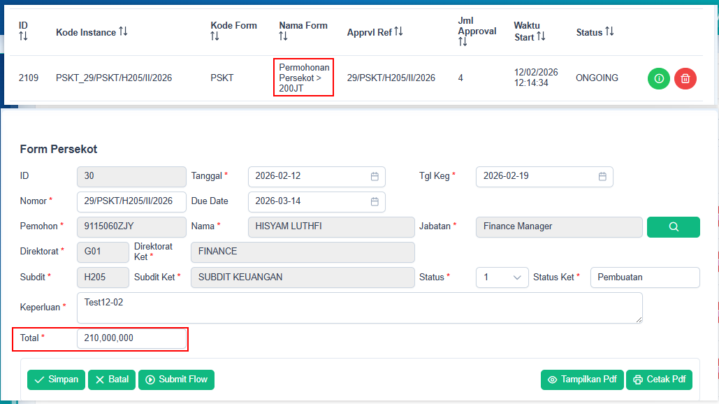 Approve persekot di atas 200 Juta