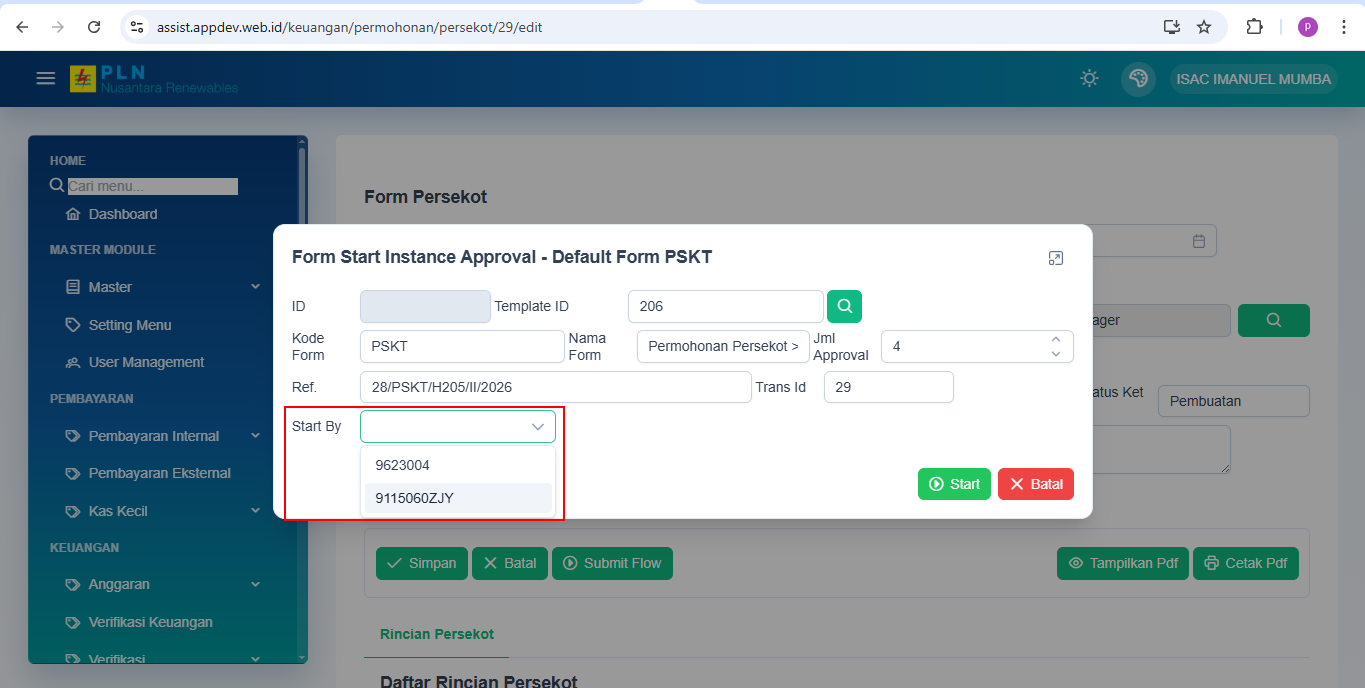 Approve start by pemohon