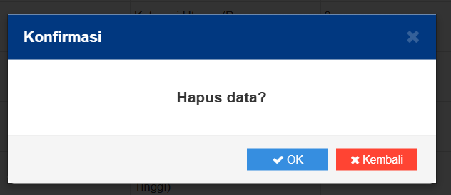 Halaman Fitur Hapus Kategori