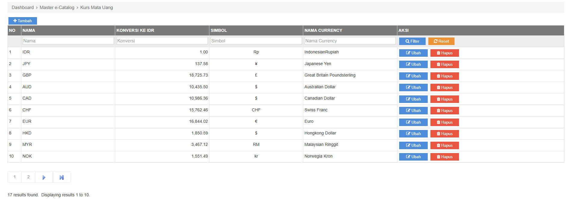 Master Kurs Mata Uang