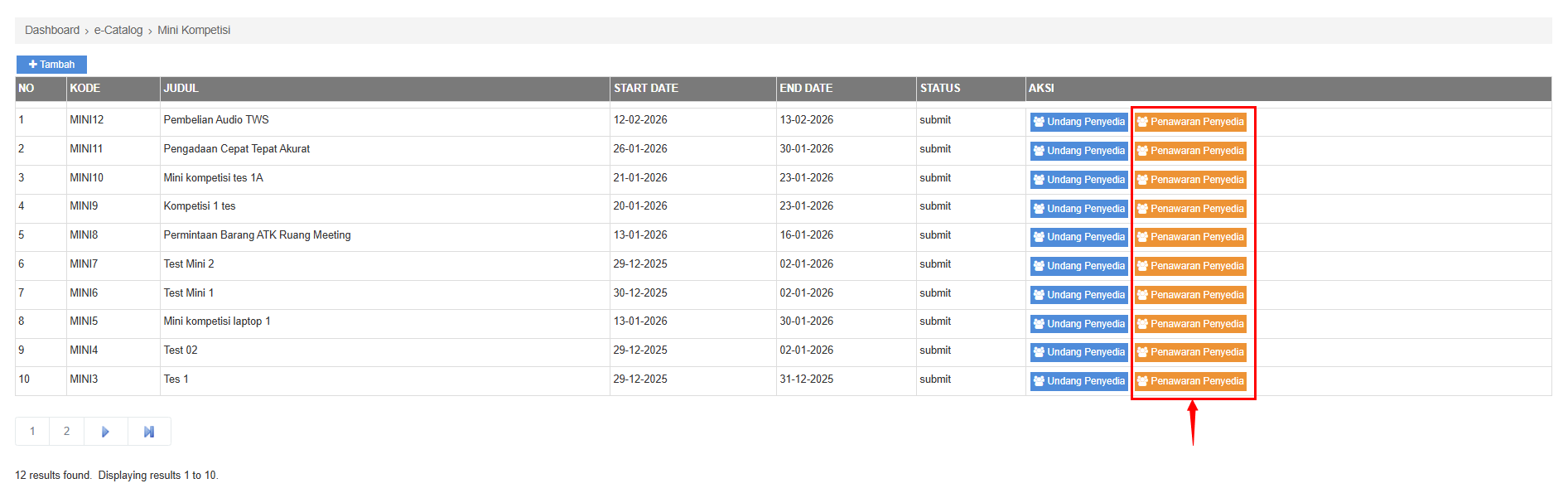 Tombol penawaran penyedia